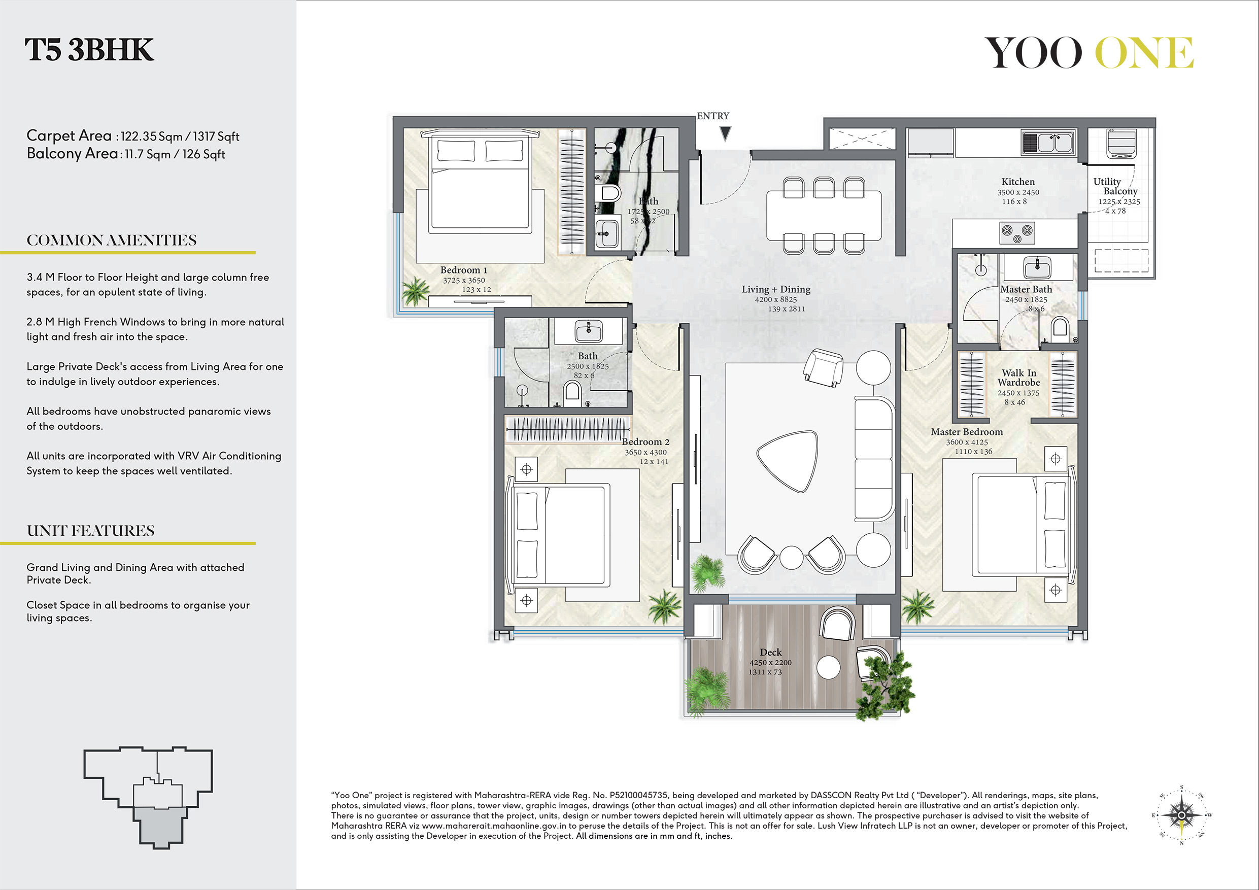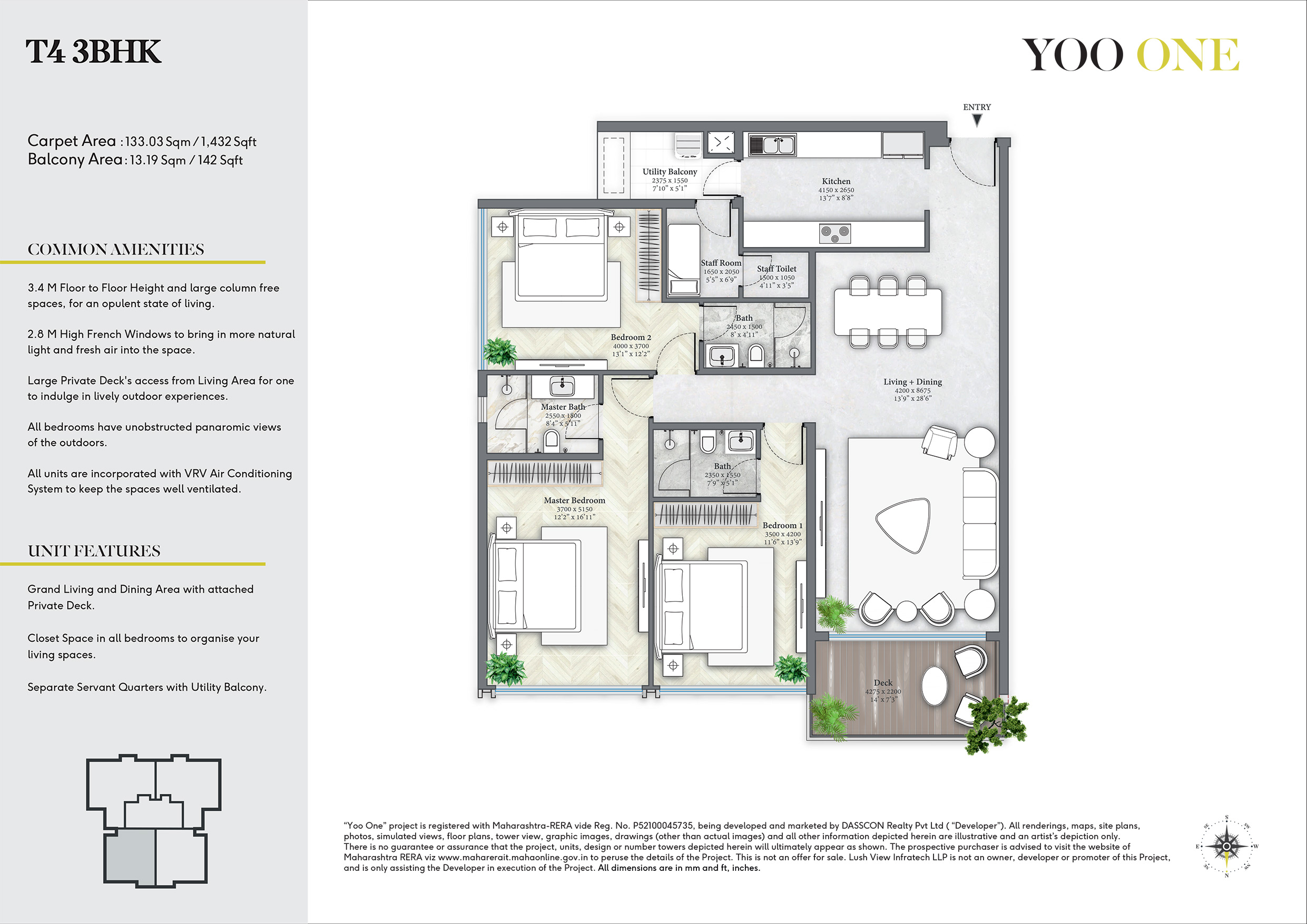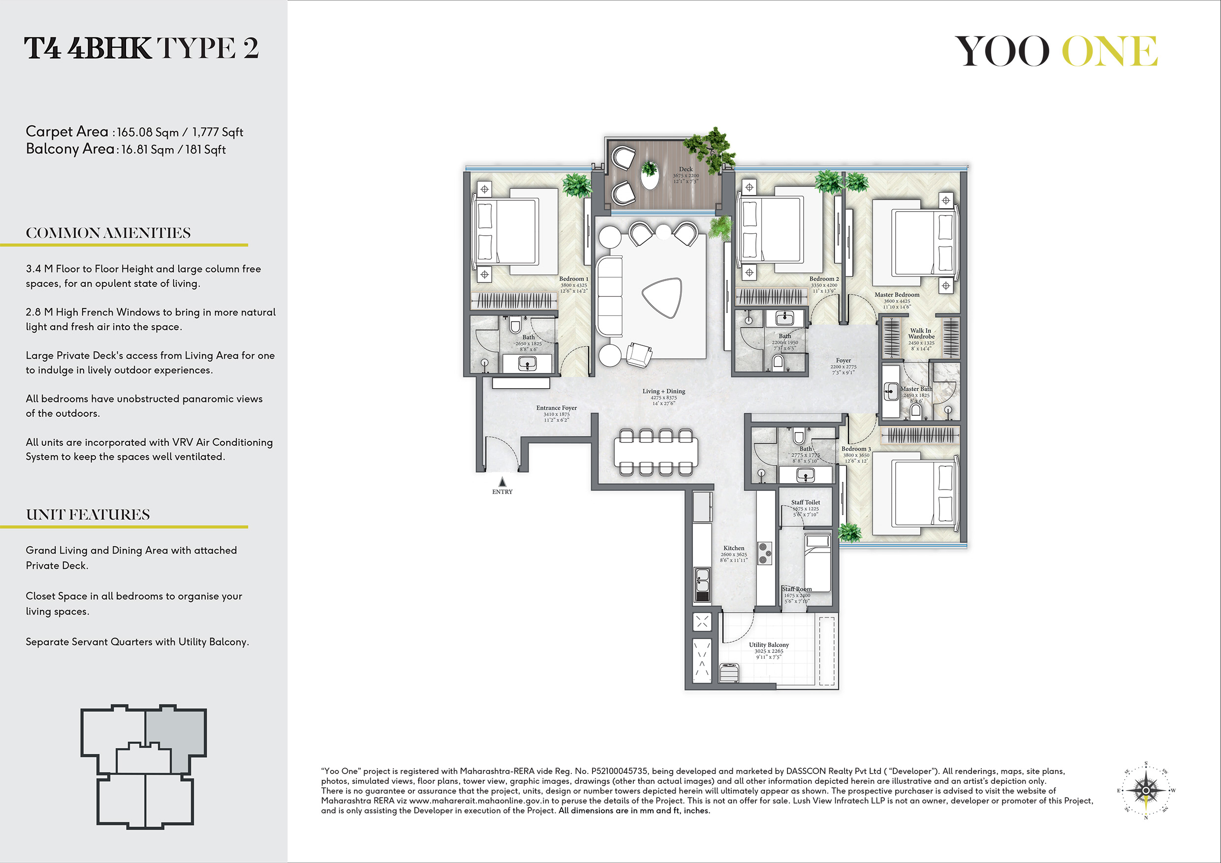 "Yoo One” project is registered with Maharashtra-RERA vide Reg. No. P52100045735, being developed and marketed by DASSCON Realty Pvt Ltd ( “Developer”). All renderings, maps, site plans, photos, simulated views, floor plans, tower view, graphic images, drawings (other than actual images) and all other information depicted herein are illustrative and an artist’s depiction only. The project, units, design or number of towers depicted herein are subject to change as maybe decided by the company or directed by any competent authority in the best interest of the development.