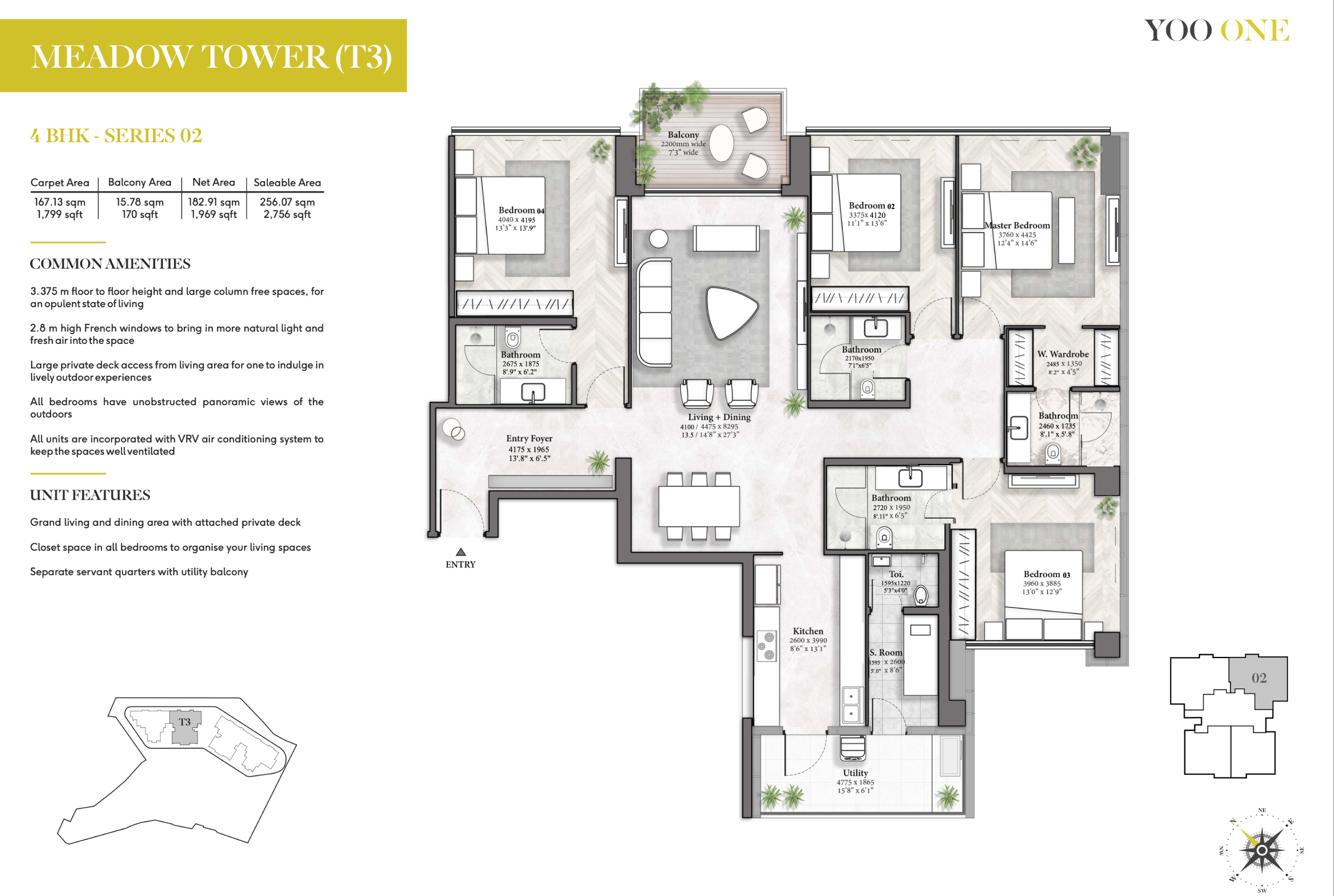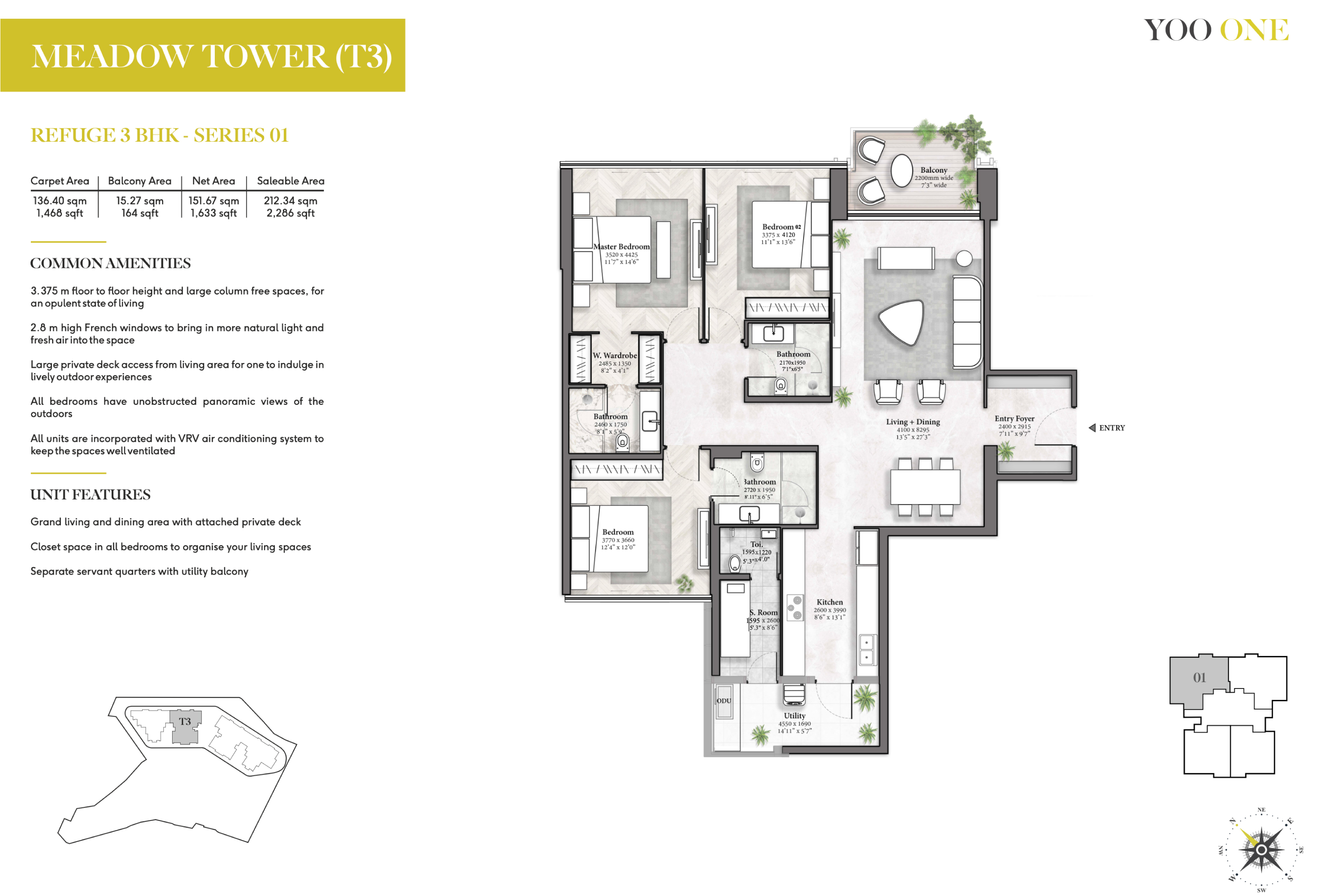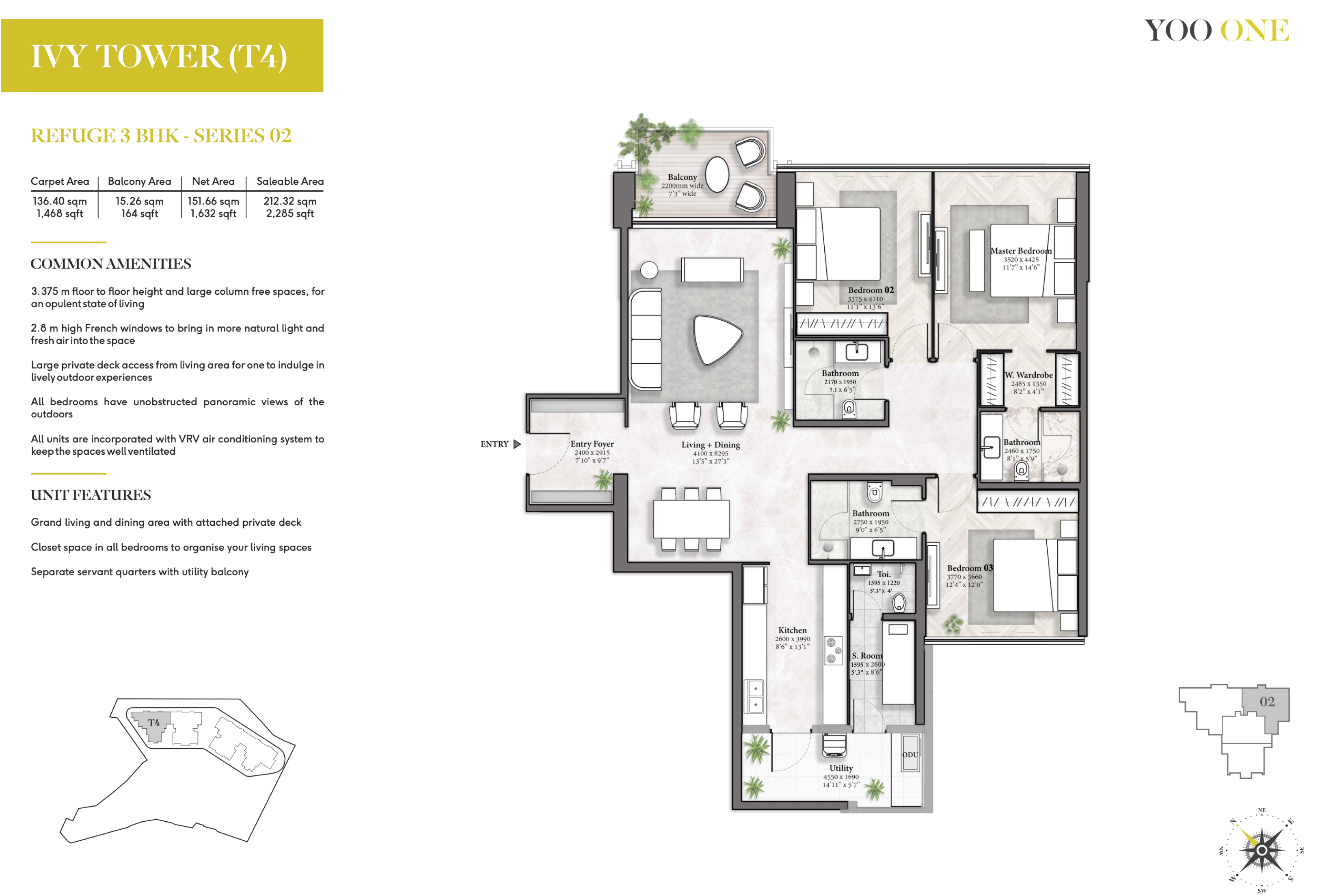 The colossal floor-to-ceiling height of 11 ft. offers the real grandeur of life and makes it larger than any other apartment in the vicinity. With a massive 1.5-acre rooftop flooded with world-class amenities, the residences are designed to offer something for everyone, every time.