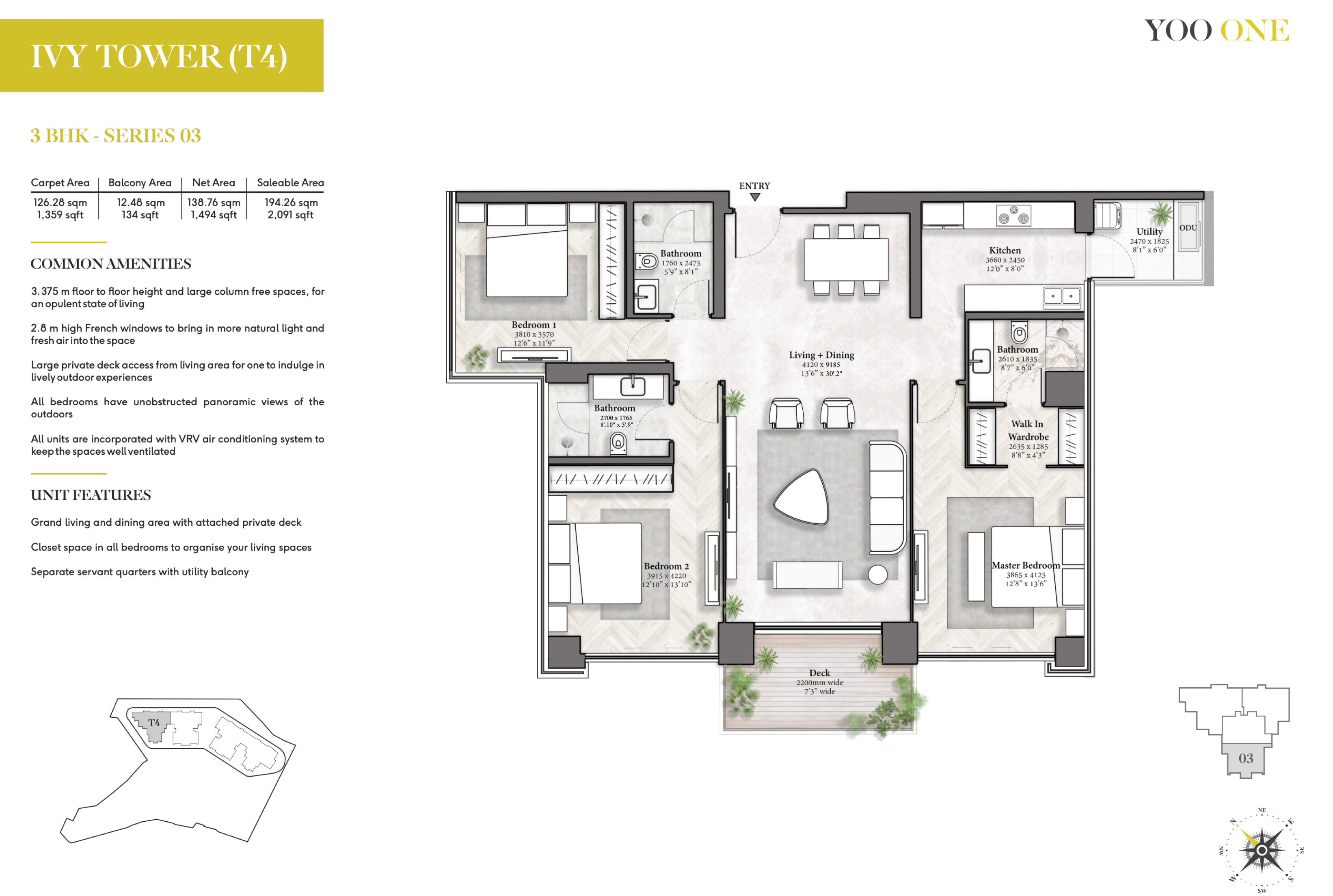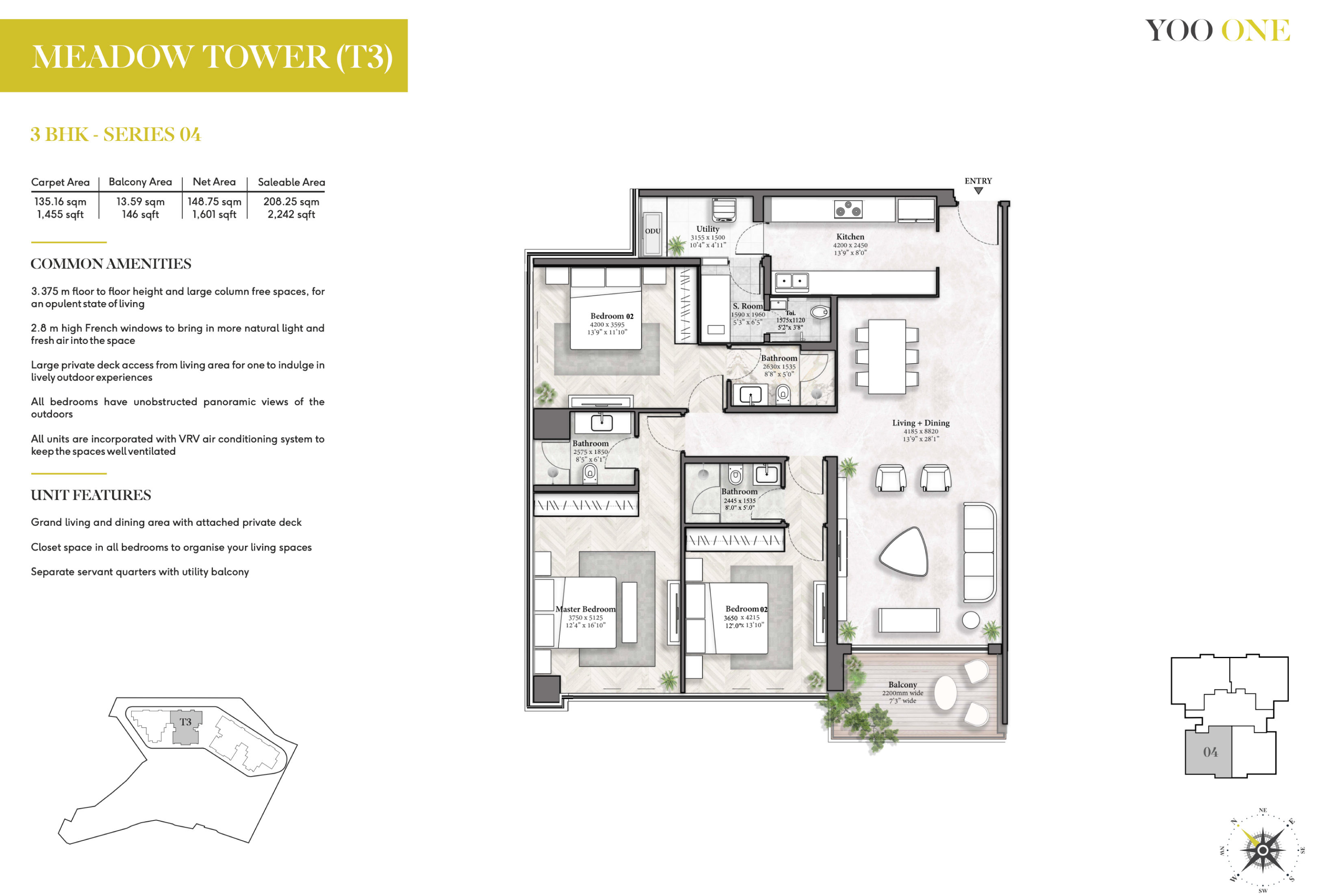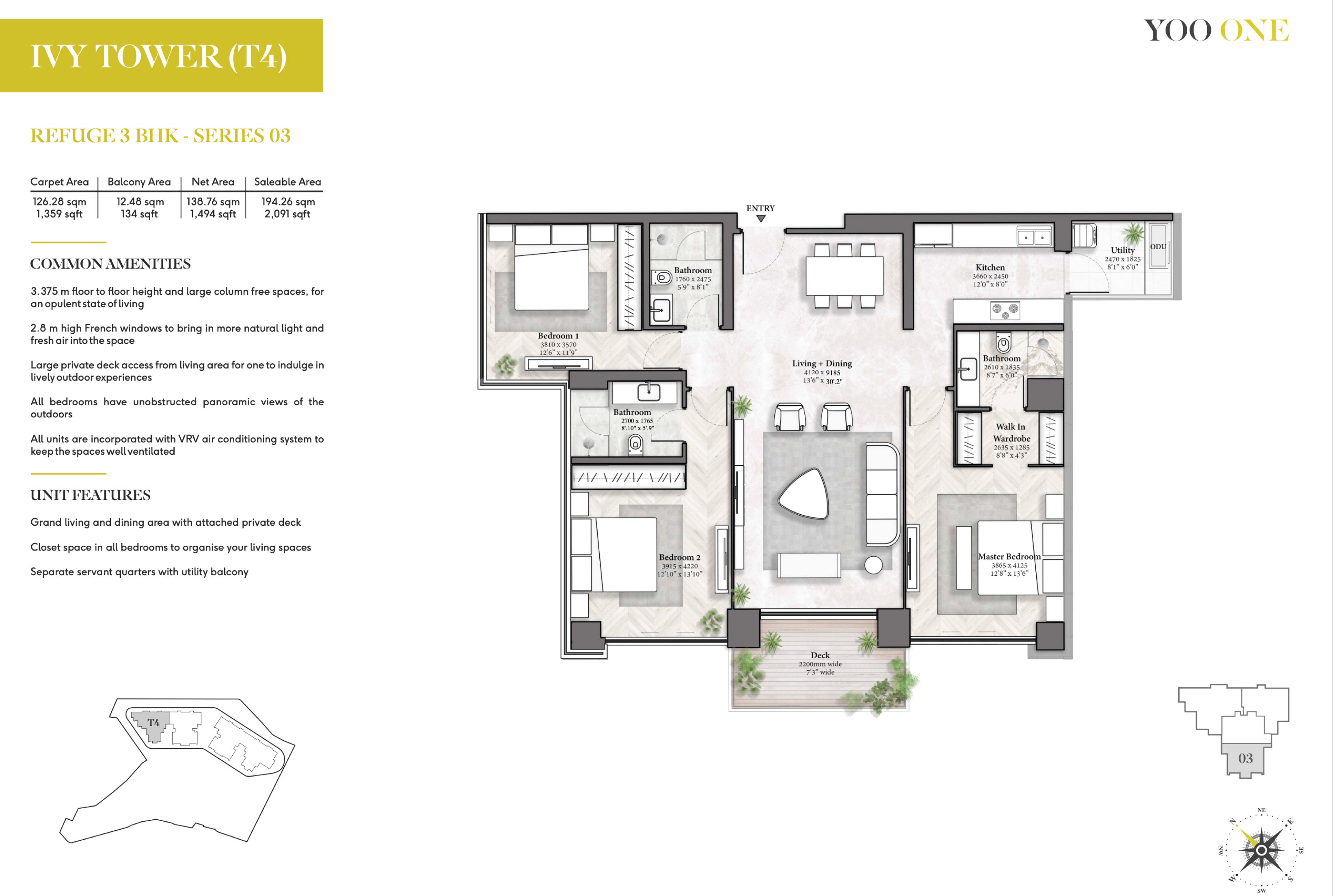 The colossal floor-to-ceiling height of 11 ft. offers the real grandeur of life and makes it larger than any other apartment in the vicinity. With a massive 1.5-acre rooftop flooded with world-class amenities, the residences are designed to offer something for everyone, every time.